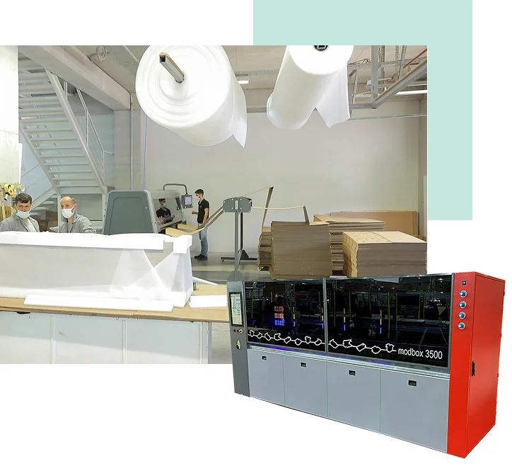 By producing your box when necessary and in the size you want, we reduce your box stock problem and costs with actual shipping dimensions. Solve your box problem with Modbox®.