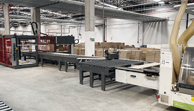 - Full synchronization of the automatic panel turning system with first orsecond pass double sided edge banding lines.