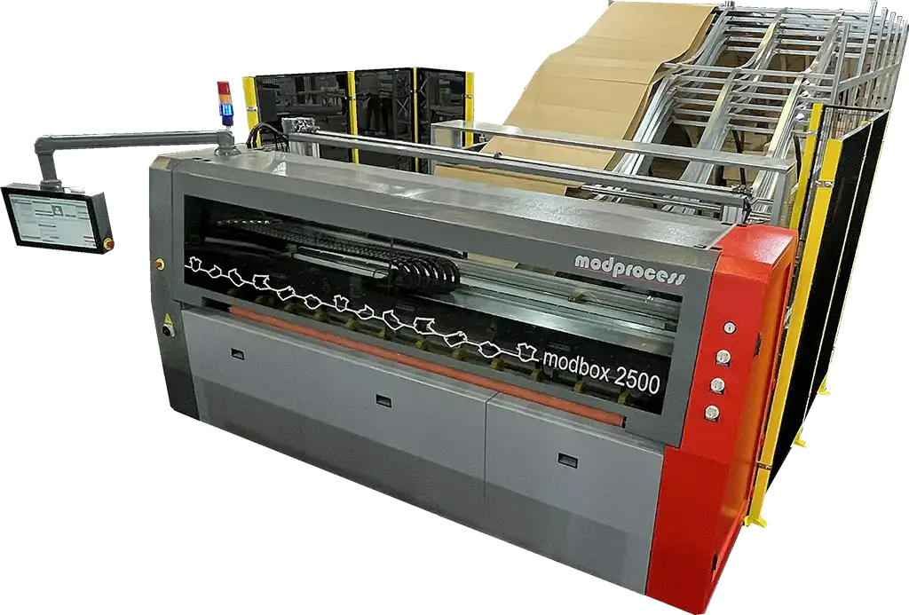 The MODBOX 2500 Magazine is a robust, right-sizing packaging system that offers the highest reliability for your most complex, custom-made packaging needs. The MODBOX 2500 Magazine is an industry staple in the production of custom-sized packaging, helping your company achieve supply chain efficiencies, increased storage space, reduced product damage and production with minimal waste.