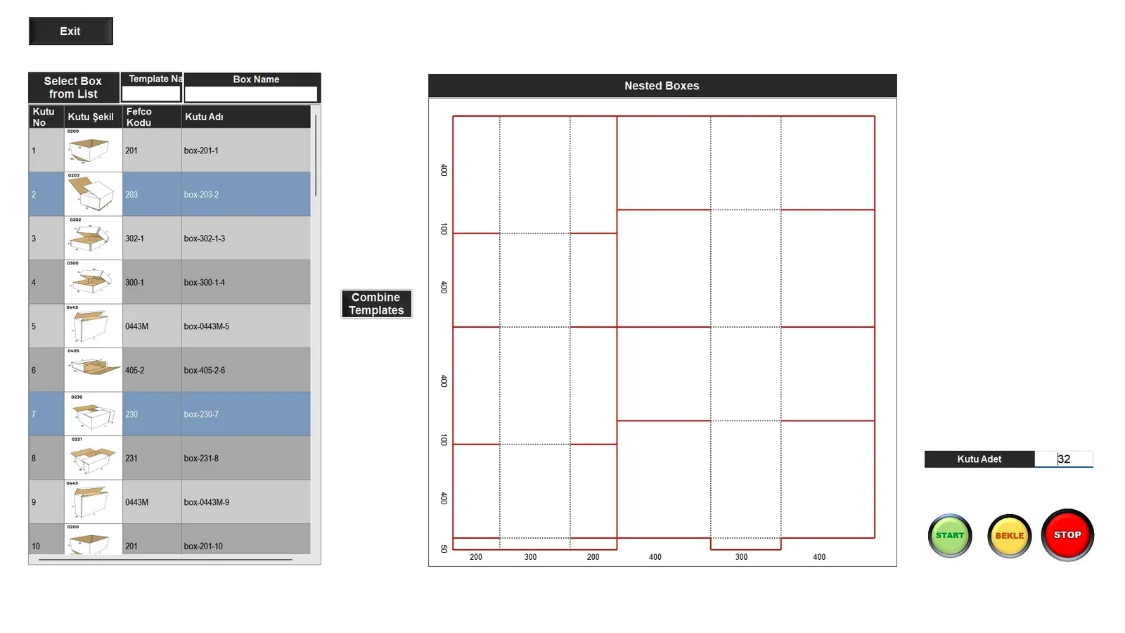 - Producing two different types of boxes of your choice from your list side by side simultaneously on a single feeding carton,